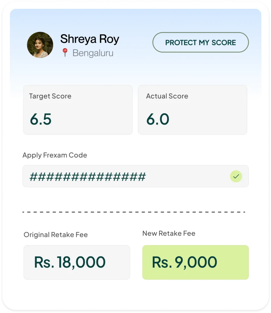 Protect your target score and get upto 50% of your retake fee covered if you nearly miss your target.